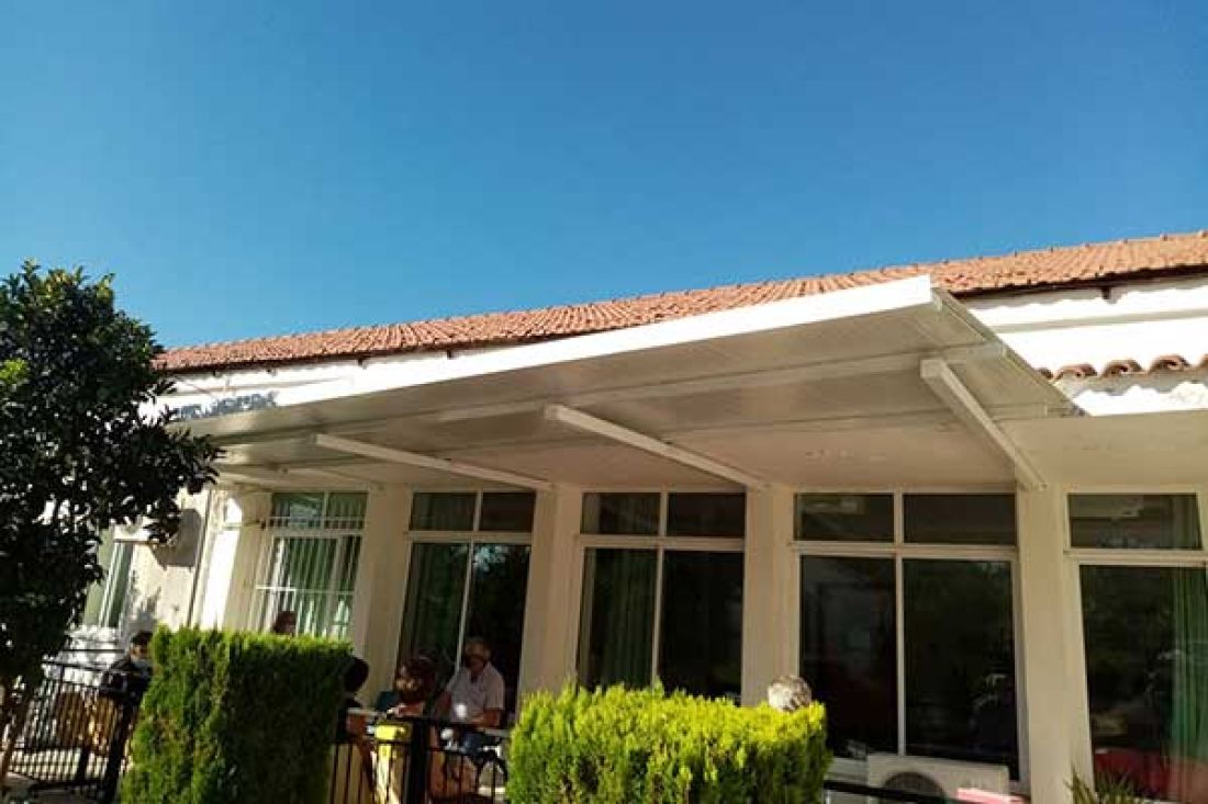 Στέγαστρα στην είσοδο του Νοσοκομείου Κρεστένων με δωρεά Ανδρέα Παπαδάκου